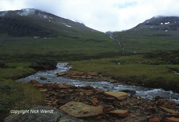 abgeschiedene Bergregion. Weitere Seen reihen sich an den Sitasjaure und führen über die Grenze bis nach Norwegen. In die Bergsättel des umliegenden Fjells haben sich vielfach Gletscher eingegraben, große, aber