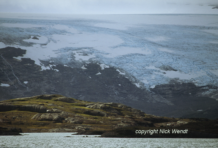 Gletscher auf der norwegischen Seite betrachten, der sich nun weiter und weiter hinter einer Felsnase hervorschiebt. Vier Stunde haben wir angestrengt zu paddeln, bis wir schließlich bei kräftigem