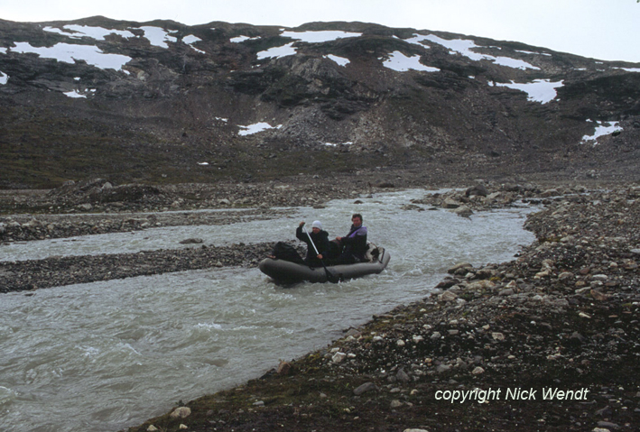 Kunstfaserschlafsäcke, ein Schlauchboot und vorgefertigte Industrienahrung. Vorsichtig steigen wir zurück über die Geröllhalden, über die wir