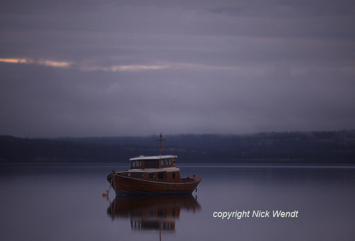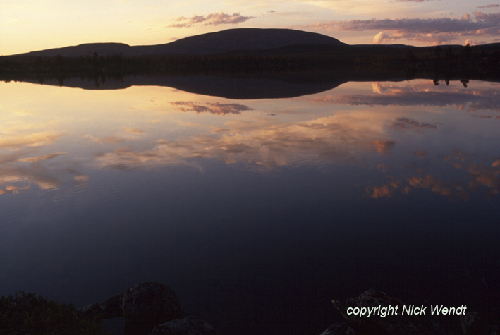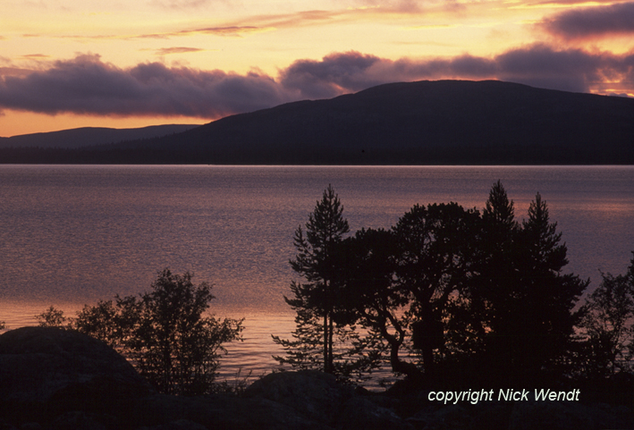 verzweigten Buchten, zwischen gerade eben haushohen Hügeln.Gegen Mitternacht hatten wir endlich ein Plätzchen gefunden. Es war immer noch fast taghell. Das Plätzchen lag auf halber Höhe eines Hügels am