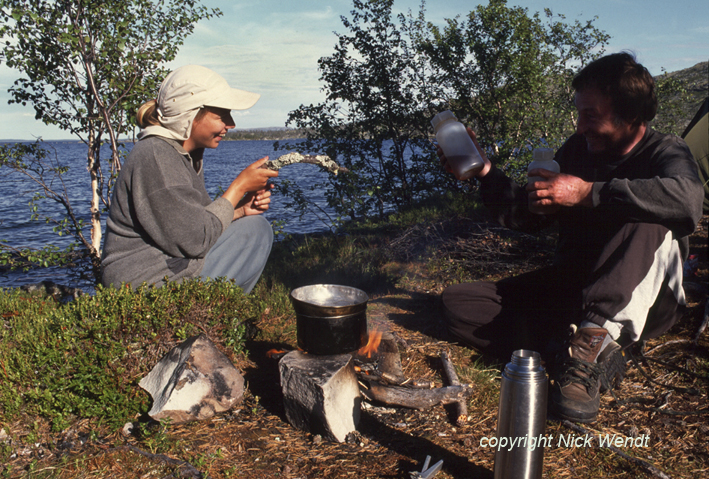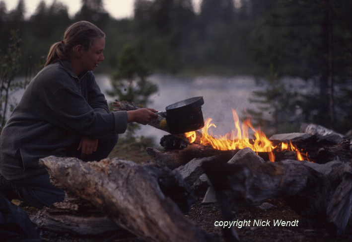 Nachmittag unser Gepäck an Land, um an einem gar nicht steinigen Platz in Norwegen unser Zelt aufzubauen. Endlich gab es auch eine warme Mahlzeit, es ist die erste an diesem Tage.