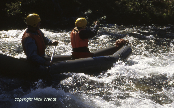 und auch in der unteren Hälfte schäumen hohe Wellen, so daß wir dort nicht einsetzen konnten. Die zweite Stromschnelle kurz danach