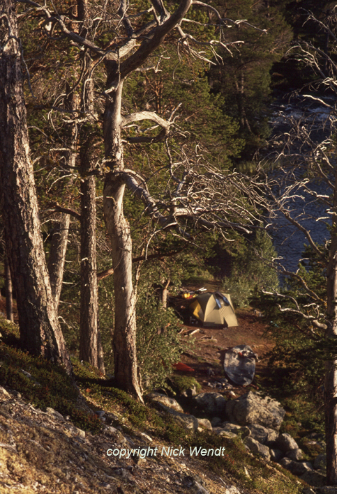 ist, einen Zeltplatz ohne Steine und Wurzeln aufzustöbern. Vom Wasser aus scheint das grün bewachsene Ufer herrliche Zeltplätze zu bergen;