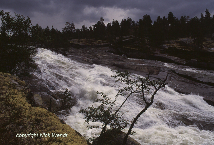 uns dann der erste Schauer, der überhaupt kein Ende nehmen wollte. Nun ja, wir waren eben in Norwegen.Nach einer weitere unfahrbaren Stufe wartete eine neue, langgezogene Schnelle auf uns, die wir nicht