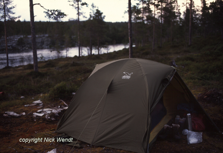 Das war es dann auch schon gewesen. Unmittelbar an der Mündung, fast noch im Sichtbereich der herrlichen Schnelle und mit Blick auf einen wunderbaren See schlugen wir unser Lager auf. Es war inzwischen neun Uhr geworden.
