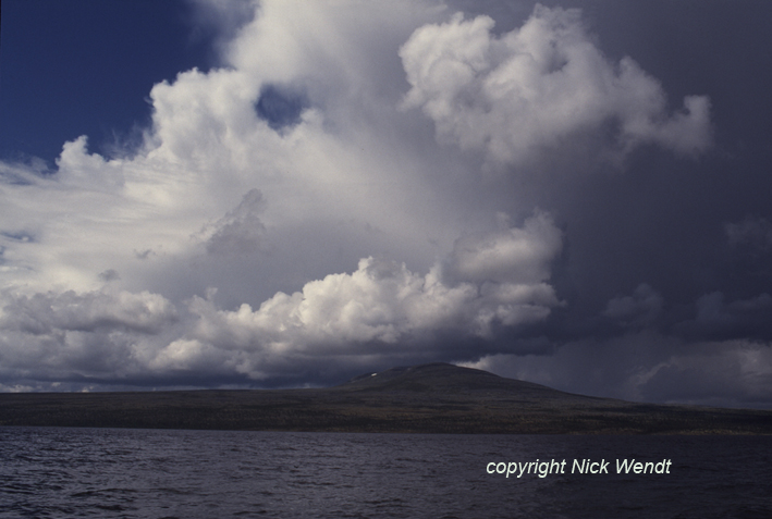bequem spazieren gehen. Vor mir im Südwesten lag der namenlose See, an dessen Ufer wir zelteten. Über mir, von Südosten, zogen dunkle Cumuli